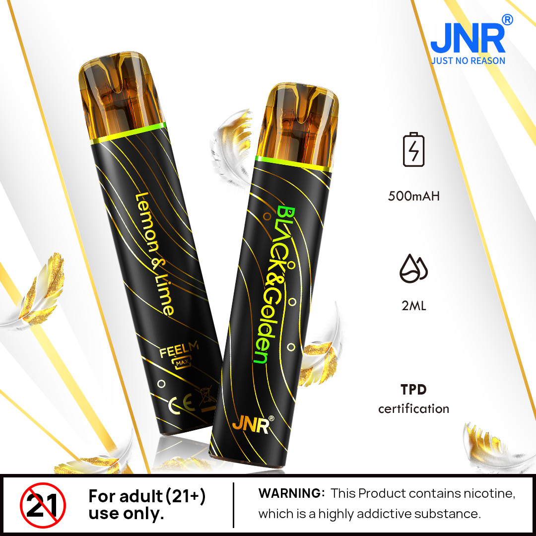 Chaque Puff JNR Black & Golden contient 2 ml d’e-liquide premium formulé à base d’arômes alimentaires de haute qualité.