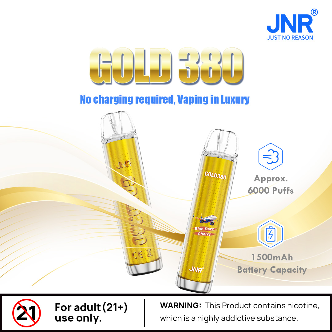 Chaque Puff JNR France GOLD380 offre une vape raffinée, au goût pur et constant, jusqu’à la toute dernière bouffée.