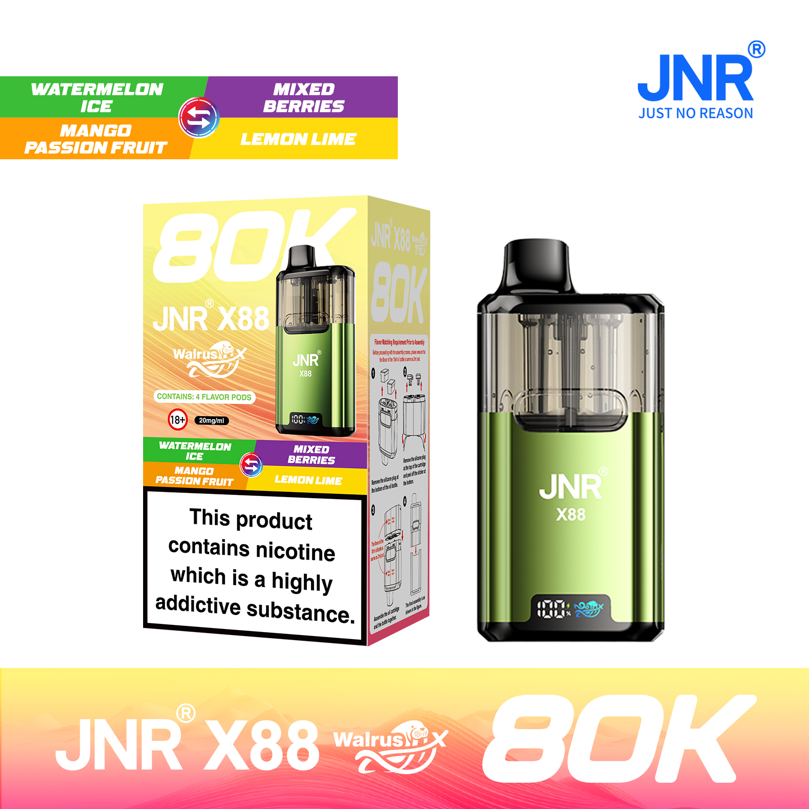 Avec une autonomie impressionnante de 80 000 bouffées, un kit 2-en-1 combinant pod + réservoir préremplis, et un design lumineux RGB immersif, la WalrusX redéfinit la vape haut de gamme.
